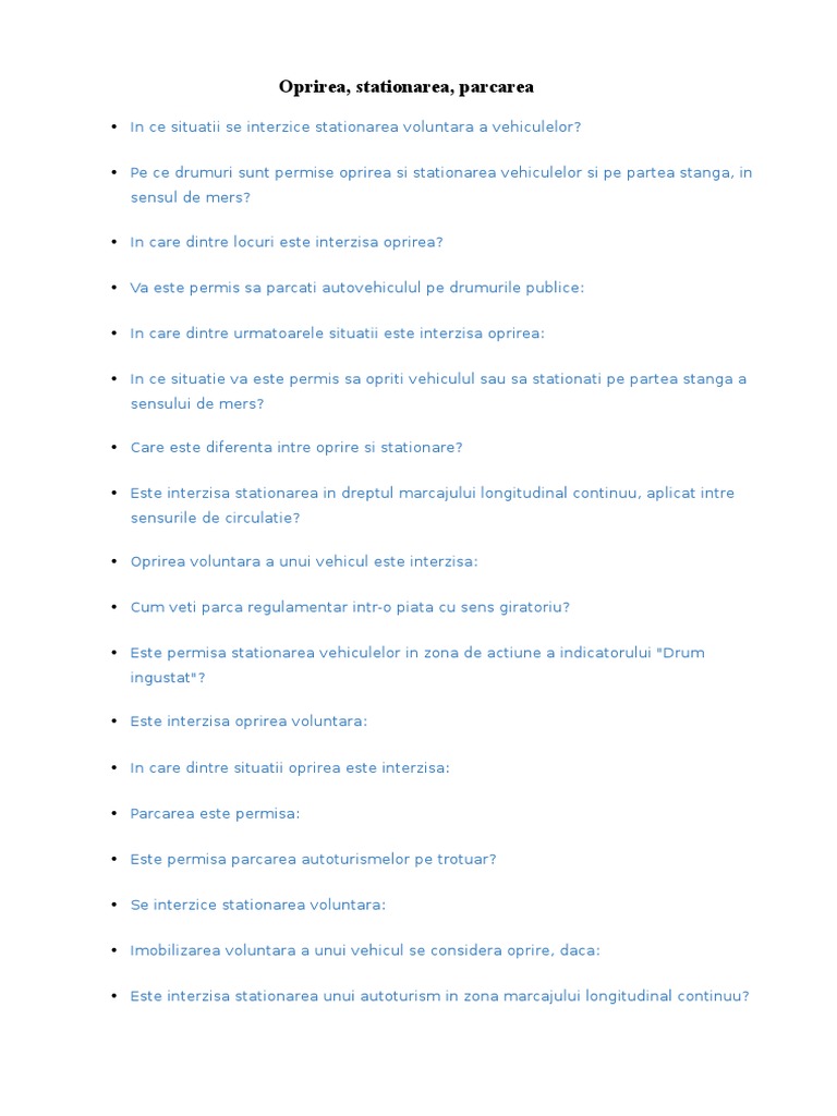 Chestionare Auto In Care Dintre Situaţiile De Mai Jos Este Interzisă Oprirea Vehiculelor Pe Drumurile Publice