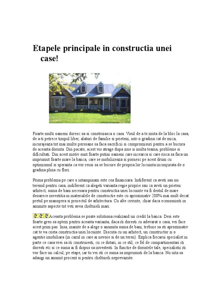 Etapele Principale In Constructia Unei Case