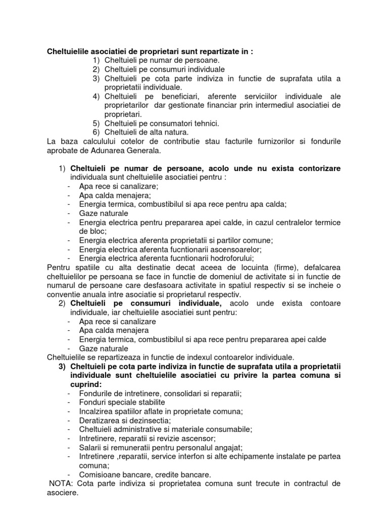 Cheltuielile Asociatiei De Proprietari Repartizare