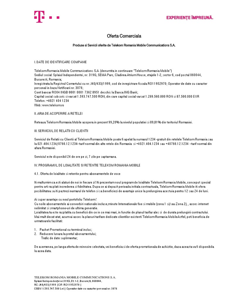 Oferta Comerciala Telekom Romania Mobile