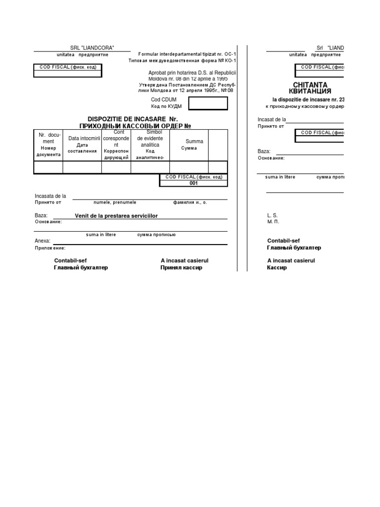 Dispozitie De Incasare Model Completat Md