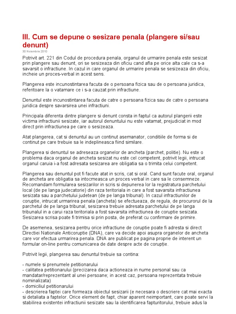 Iii Cum Se Depune O Sesizare Penala Plangere Si Sau Denunt Romania Curată
