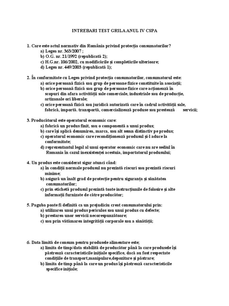 Intrebari Test Grila Anul Iv Cspa 1 Test
