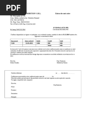 Confirmare De Sold Model Confirmare Solduri Clienti Numar Contract Docs