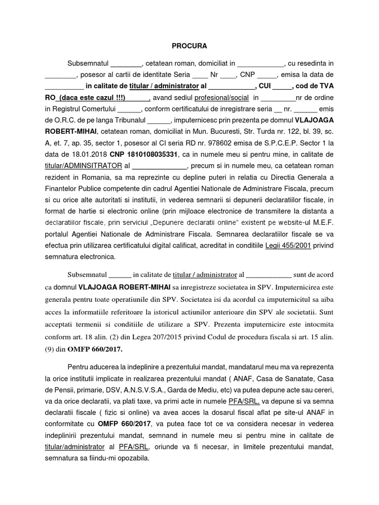 Imputernicire Pentru Inregistrare La Spv Anaf Modele Editabile și Gratuite Cabinetexpert Ro Blog Contabilitate