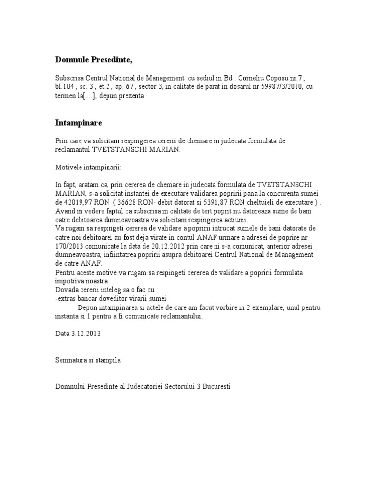 Model Cerere De Validare Poprire