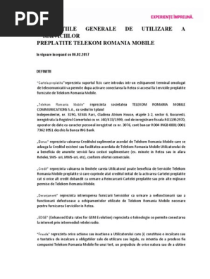 Conditiile Generale De Utilizare A Serviciilor Preplatite Telekom Romania Mobile 06 02 2017