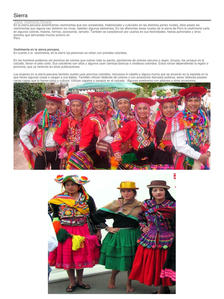 Trajes Tipicos Del Peru Como Son Los Trajes De La Sierra Del Peru