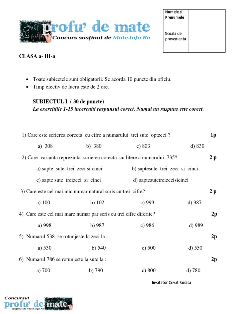 Subiecte Si Bareme Concurs Mate Clasa 3 Pdf
